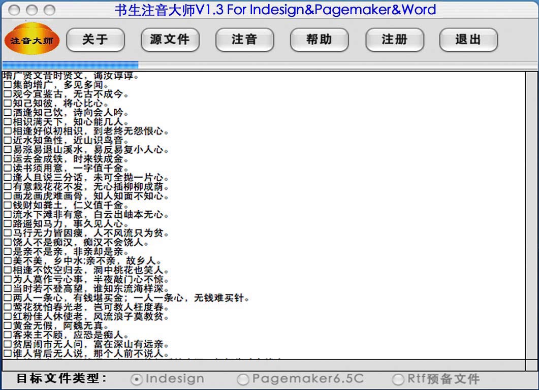 那么有没有一种针对 Pagemaker6.5C 和 Indesign CS2 中文版方便快捷高效准确地实现汉字自动标注汉语拼音的方法或软件呢?