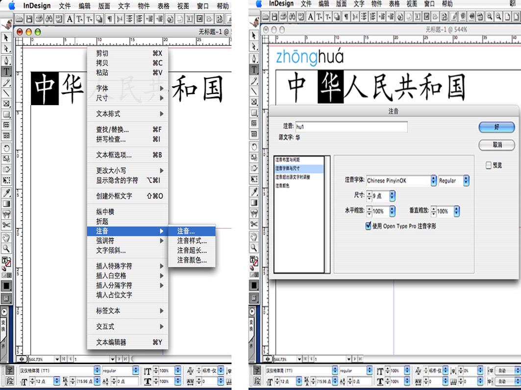 如果在 Pagemaker6.0&6.5C 或 Indesign CS 中文版中对某一段文字进行标音汉语拼音的话,一般只能一个字一个字慢慢地来,具体操作如下所述: