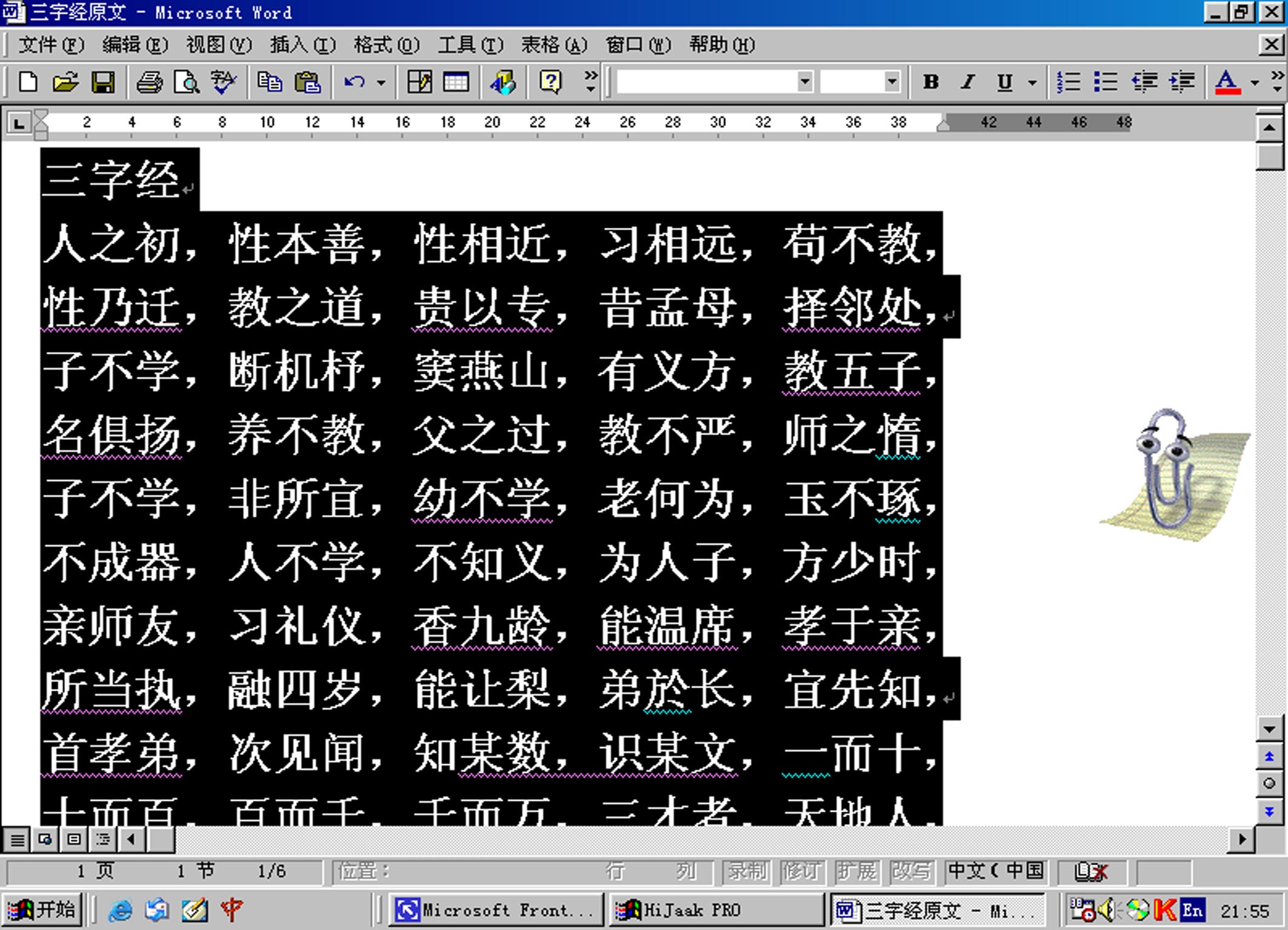 一、用WORD2000打开《三字经》原文如下图: